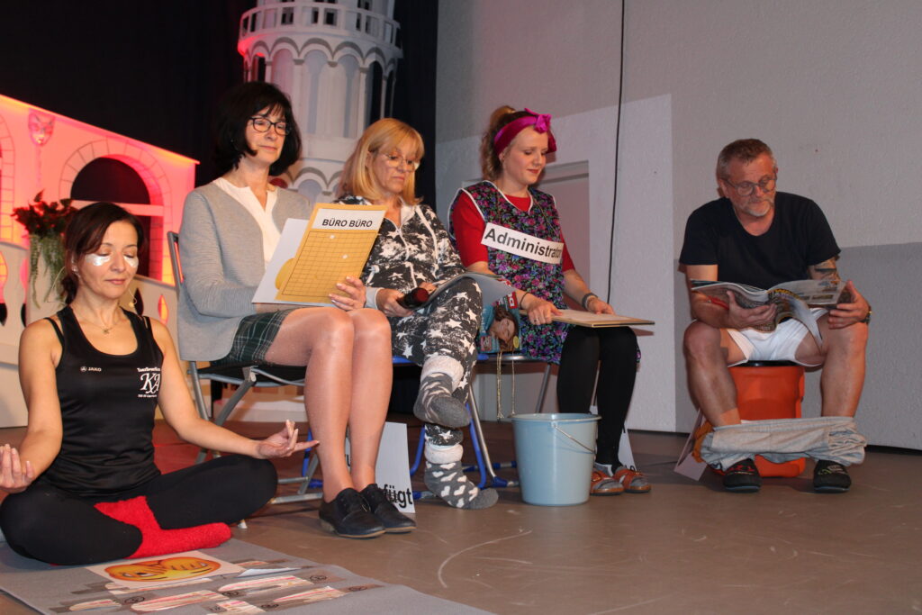 Die Schrubber-Damen planten ihren Ausflug ins Ramazzotti-Museum in der „WhatsApp-Gruppe“, sodass beim Publikum kein Auge trocken blieb. Dass auch die Ehrengäste und Senatoren Spaß verstehen, zeigten sie in einem „Battle“ als Waschweiber. Mit einer Live-Gesangseinlage kam dann Denise Gärtner auf die Bühne und begeisterte das Publikum.